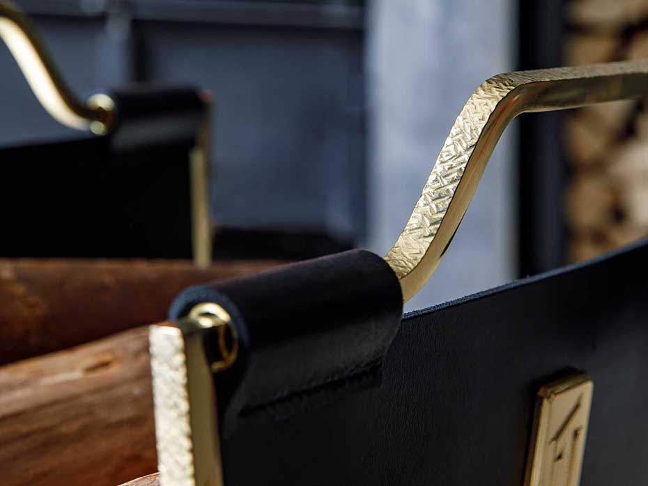 Дровница с кожаной вставкой FG-12027 полированная латунь + чеканка
