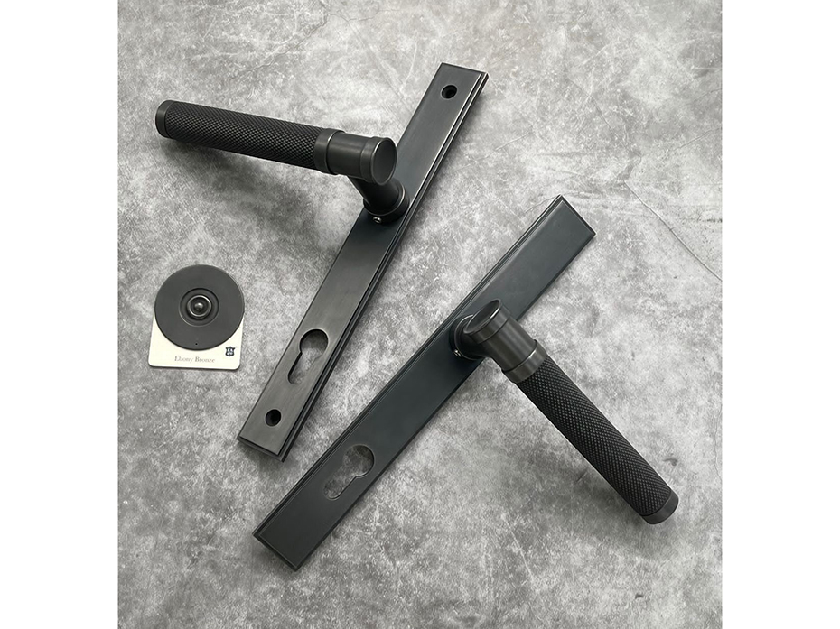 Ручка для балконной двери на узкой планке Frank Allart 7748G0259 чернёная латунь с полировкой
